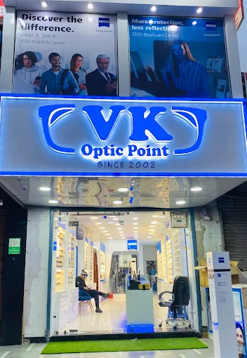 "Discover exceptional eye care at VK Optic Point, your trusted family optician since 2002. As a Zeiss Vision Expert located in Greater Noida, we're dedicated to providing fast, accurate, and guaranteed service. Our knowledgeable staff will guide you in selecting the perfect lenses and frames to suit your needs. We offer a comprehensive selection of eyewear, including spectacle frames, corrective lenses, contact lenses, solutions, and sunglasses. We offer the latest frames from premium brands, including Ray-Ban, Fastrack, Vincent Chase, etc. Experience originality, quality, and a world of options in eye care with us. Whether you need trendy sunglasses, contact lenses, or high-quality lenses, we’re here to help you see better and look great!"